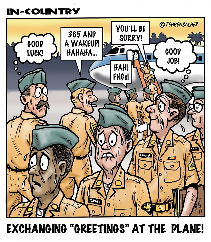 Phil enlisted in the Army in 1965 where he served for years in Vietnam. He became a graphic designer and has worked for the state of Oregon for 26 years. He retired in 2003 and started the Cartoon "In-Country". The cartoons reflect his experiences during his tour of duty in South Vietnam.